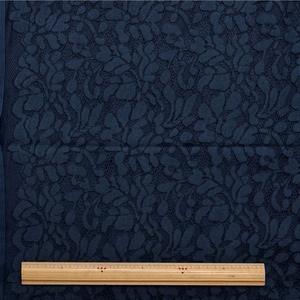 ★NN013◆2m◆綿ポリエステル混コードレース生地◆花柄+柄物◆ネイビー
